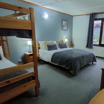 Our homely, spacious Lodge caters for up to 14 guests across five rooms in our chalet-style cabins.